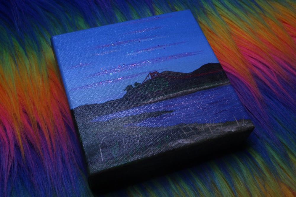 This cotton canvas showcases an exclusive illustration inspired by one of many San Francisco beautiful sceneries. This 6x6 painting features San Francisco Golden Gate Bridge view from a near park named Crissy Fields near the Presidio tunnels. Perfect for a home or office in need of a touch of an original piece of art. Each piece is meticulously crafted to ensure vibrant colors and lasting quality.