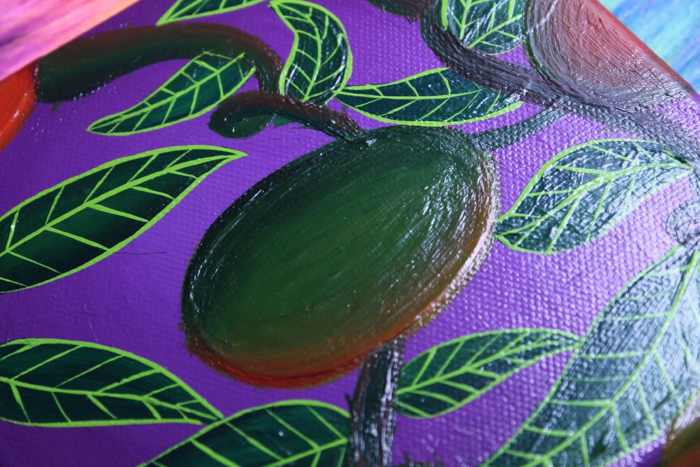 Description:This cotton canvas showcases an exclusive illustration inspired by being surrounded by fresh, ripe, unripe mangoes everyday in Guatemala. This 6x6 painting features many mangoes in various stages of growth. This painting is perfect for a kitchen, home or office. Are you someone who eats mangoes or is fond of this fruit? 🥭Each piece is meticulously crafted to ensure vibrant colors and lasting quality.